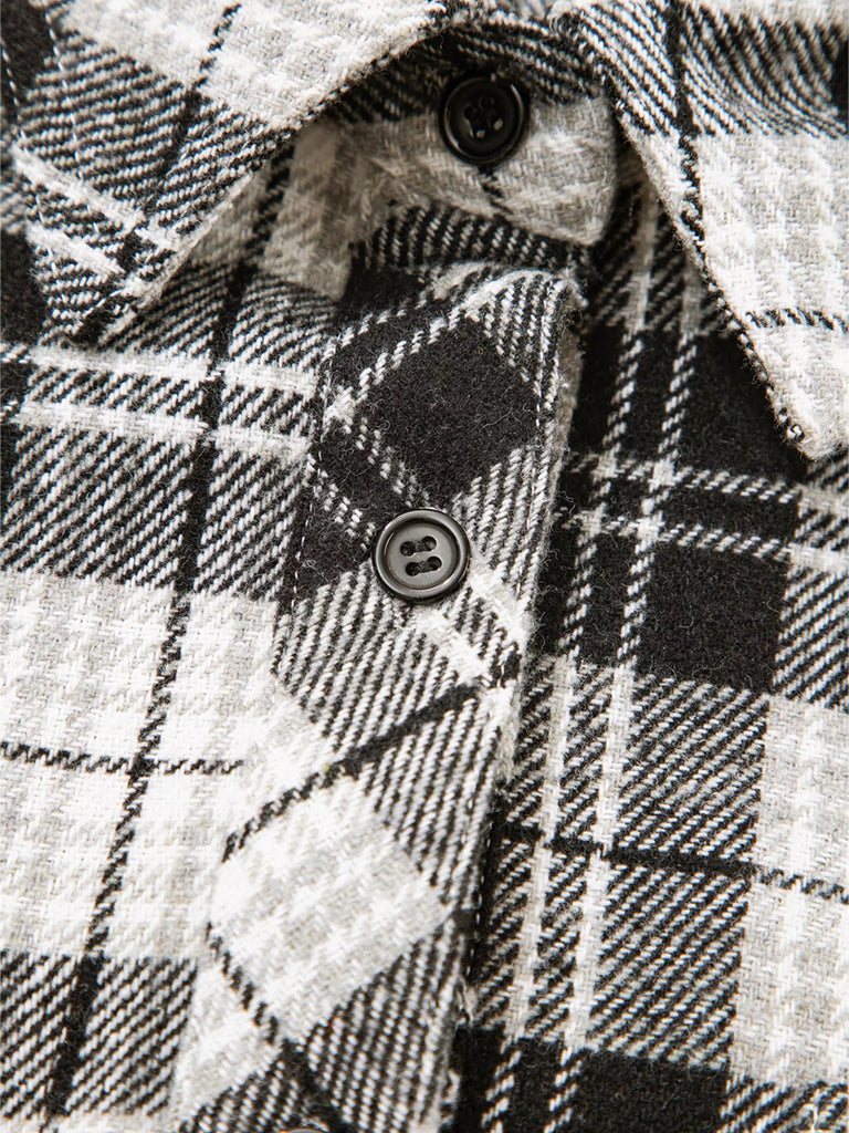 Plaid Print Chest Pockets Buttoned Shirt