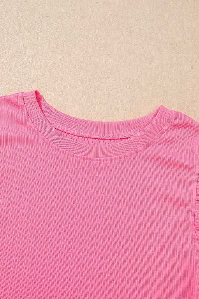 Ruffle Trim Round Neck Top and Drawstring Skirt Set