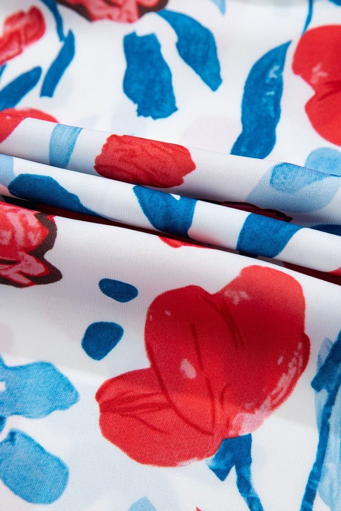 Ruffled Printed V-Neck Cap Sleeve Blouse
