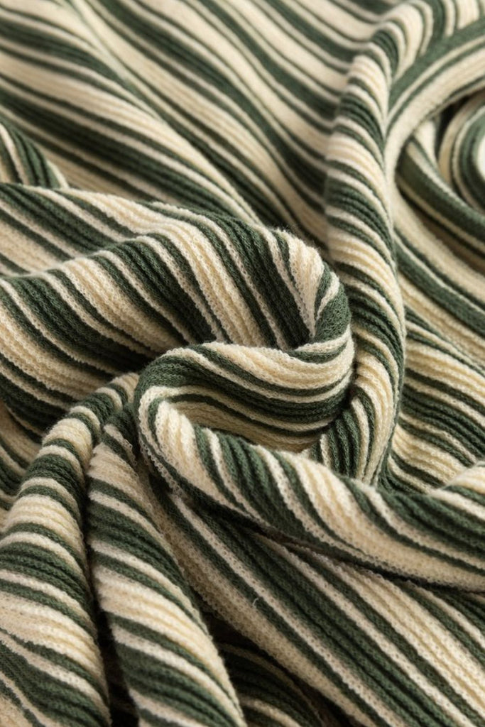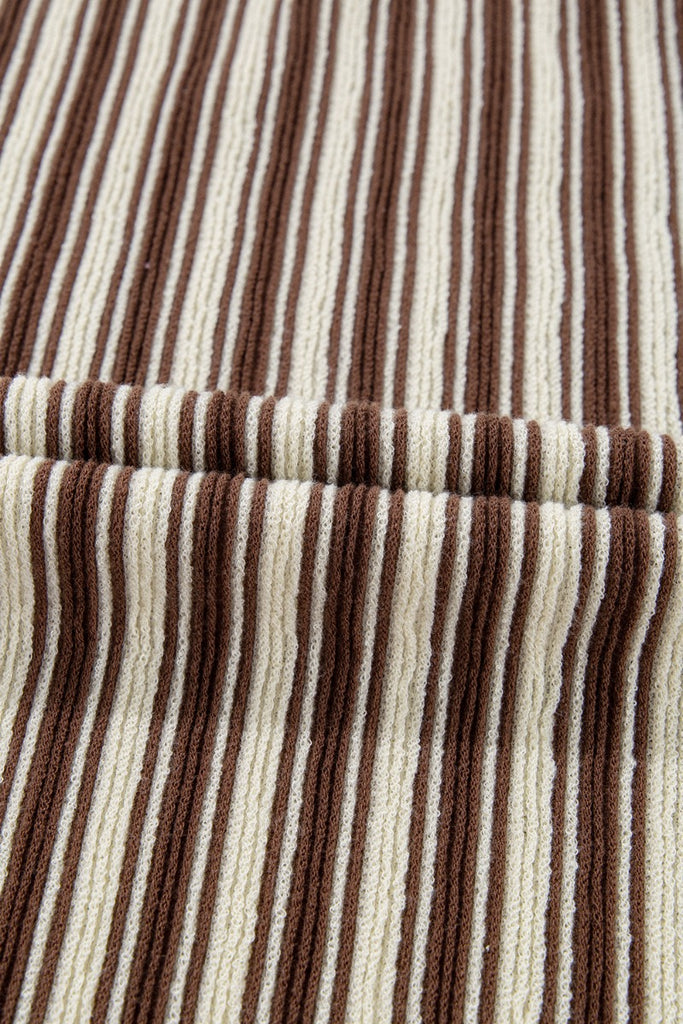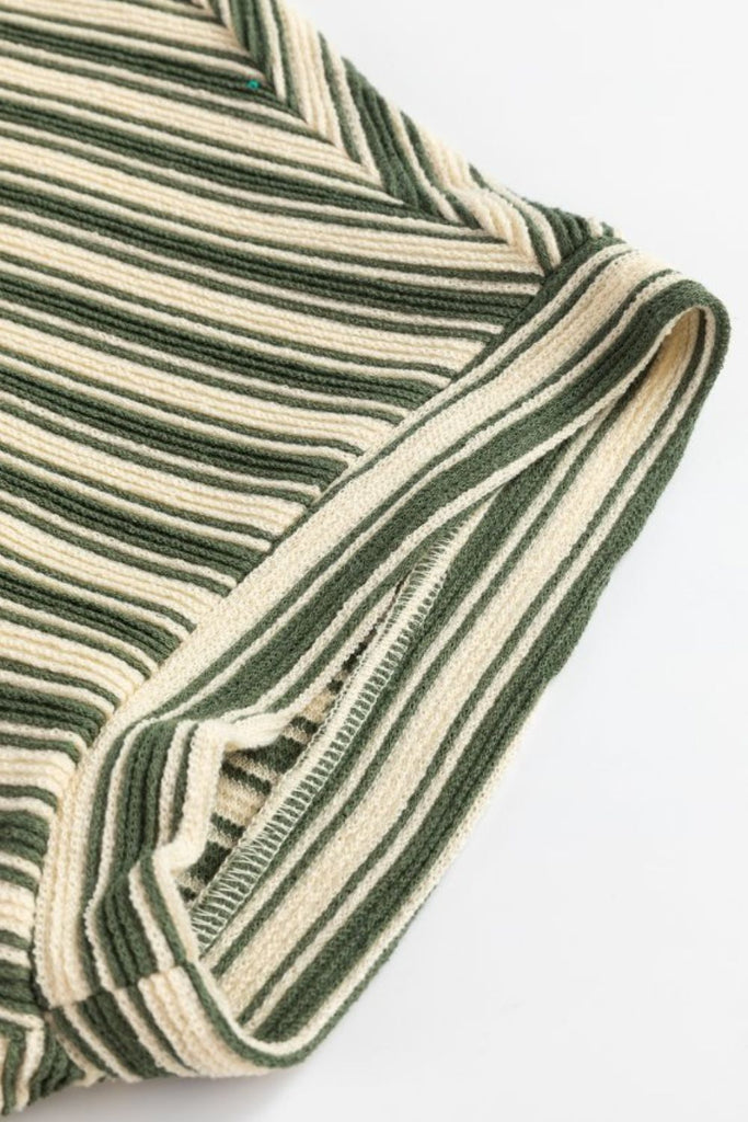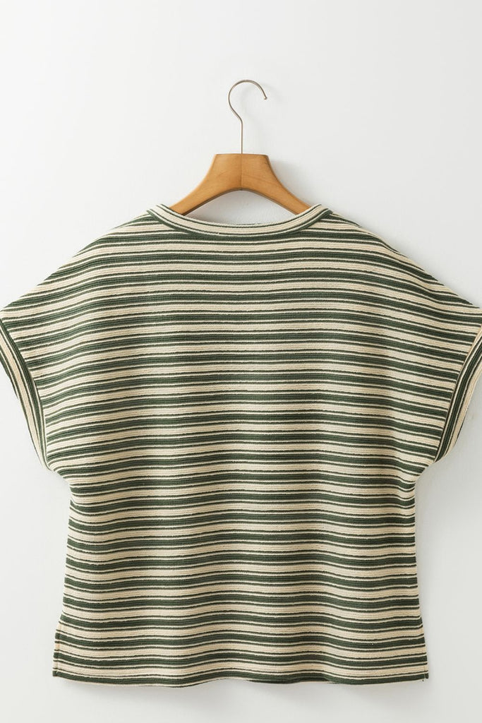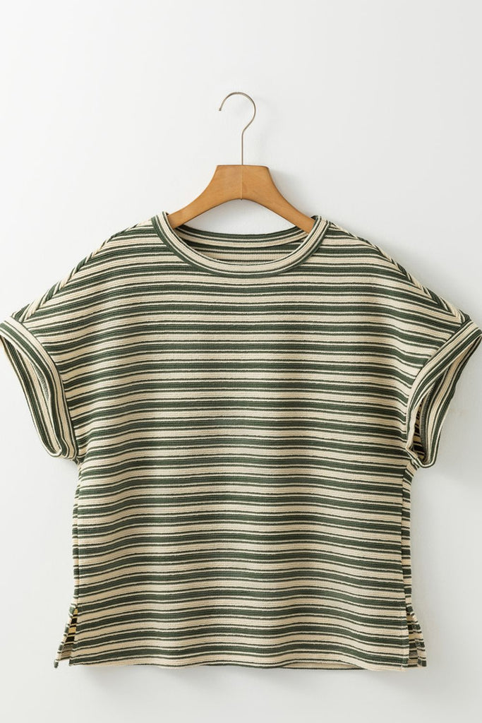 Stripe Textured Side Slit Crew Neck T-Shirt