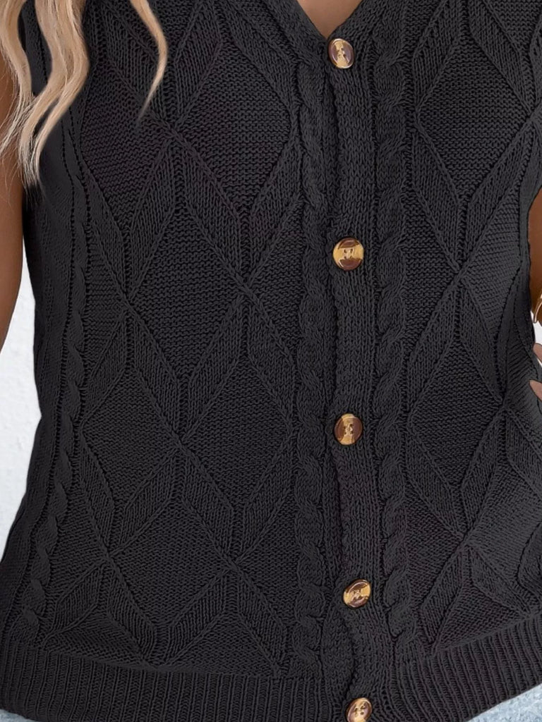 Texture Knit Button Up Cap Sleeve Cardigan